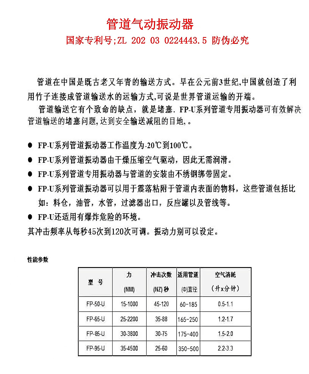 管道專用氣動振動器 型號FP-50-U/FP-65-U/FP-85-U/FP-95-U