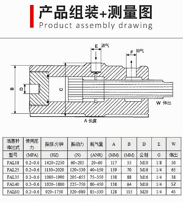 活塞桿伸出氣動振動器FAL-18 FAL-25 FAL35/FAL40/55/60